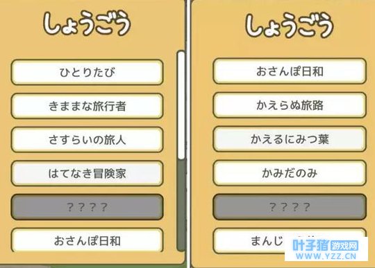 3) He travels to many famous vacation sites in Japan and sends cute pics from there or somewhere on the road in between. 小蛙会去日本很多著名景点旅行,还会发可爱的照片给你,有景点照,也有路上拍的。 4) He brings back some local specialties, including food items and non-food items, as souvenirs and you try to complete them. However, there is no souvenirs if you get him only cheap food, besides the first trip. 他旅行回来还会带纪念品或土特产哦。不过除了第一次旅行,如果你只给他买便宜的食物和装备的话,他们就不会带东西回家。 5) There are visitors like a snail, a bee and a turtle at his door. Each time they visit, there is a flyer in the mail box, and you get a lottery ticket if you view it by tapping on it. Make sure you have an internet connection before you tap, and it will ask you if you like to view the advertisement or not. Then you tap "はい" which is yes. 你家门口隔三差五会有小蜗牛、小蜜蜂、小乌龟到访。它们每次来的时候,你的信箱就会有提示。点击查看你就能收到彩票。打开信箱前一定确保连好了网络,系统会问你是否查看,点击是的("はい" )。 6) Tap on a visitor, the food souvenirs box opens, which you get from the frog, then you choose the food to treat the visitor with. In return, the visitor sends lots of regular clovers or one four leaf clover later. 家里有客人来访的时候,你需要把小蛙带回来的好吃的拿出来,招待客人~ 作为回报,客人会给你大把三叶草或者是一个四叶草。(就是赏金嘛,留着给蛙买装备吧) 7) Time to time, the frog gets the new titles as a traveler, like a care-free wanderer. You can see them by tapping on him, but they are in Japanese. It seems that those titles have some effects on the development of the game. 时不时的,小蛙也会获得各种旅行头衔,比如“无忧无虑的漫游者”之类的。点击小蛙就能看到(虽然是日语),但不同的头衔貌似对游戏进程也有影响哦。