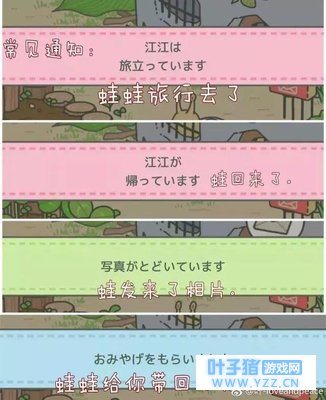 手游《旅かえる》,译作《旅行青蛙》 前几日还因许墨/白起/李泽言/周棋洛 夫人之位争得头破血流的少(fu)女们, 今摇身一变,成为操碎心的空巢老母亲! 当然小编也不例外 每天像老母亲一样盼着 外出旅行的蛙给我寄明信片 刚开始还没察觉 养了几天才发现 自己蛙的画风怎么和别人差这么多?! ▼ 这是别人家的蛙寄回来的明信片 成群结队的高端跟团游