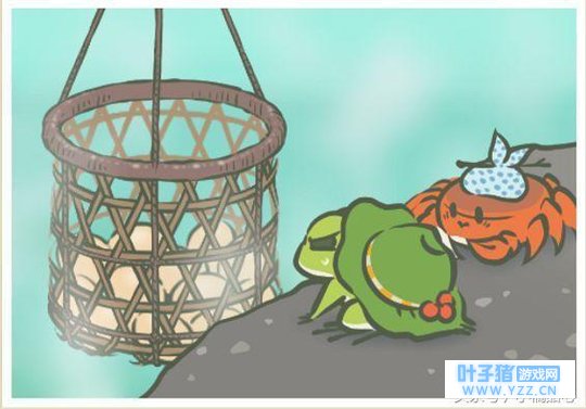 大家可以看一下是不是和上面的一模一样,其实这里是温泉,画中的也就是在煮的“温泉鸡蛋”。小青蛙闭眼深思,也许是在进行一场虔诚的“圣地巡礼”,是不是很可爱呀。