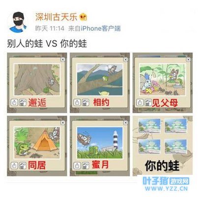 可见,这个游戏的影响力之大。《恋人与制作》这款手游,投入了大量的广告宣传,也受到了很多女玩家的喜爱。《旅行青蛙》则是日本的游戏,甚至会有语言障碍。但有人声言养男人不如养儿子!现在我们来看看青蛙儿子引发了哪些话题吧