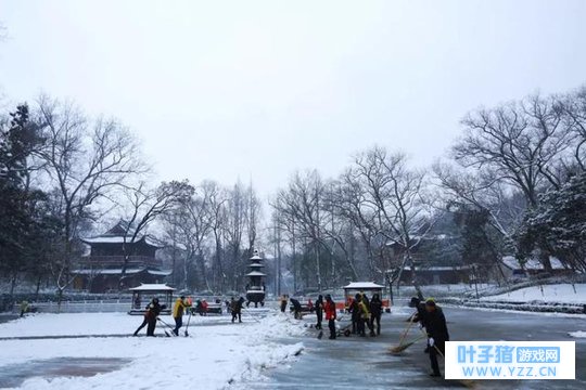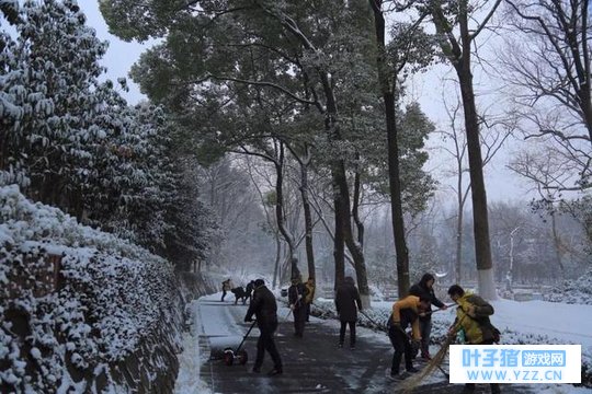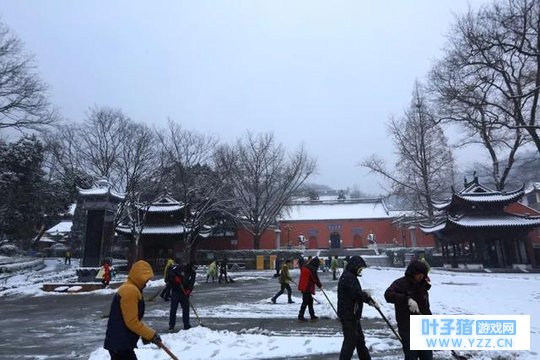 栖霞山的小伙伴为了大家~ 正在积极清扫积雪哦~ 大雪纷飞 大家连扫雪都显得辣么浪漫~~