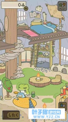 有时候点进去,正好碰到小青蛙在家,他会吃东西,或者看书,第一天下载的时候,晚上去看,他在床上看书,还在打瞌睡,脑袋一点一点的还不肯停,进去看了几次都捧着书假装认真。 我还见过他坐在小凳子上做手工,削木头,不知道接下去还能看到他做什么事情,真令人期待。