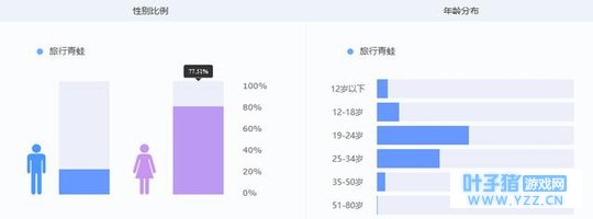 《恋与制作人》、《QQ飞车》更多是满足女性自身的恋爱需求以及社交需求,《旅行青蛙》带给女性玩家的则是另一个层次游戏情感体验。和市场上将玩法一股脑塞给玩家的游戏不同,《旅行青蛙》在游戏设计上更为简单,但始终让玩家对游戏中的主角“小青蛙”念念不忘。 《旅行青蛙》本身属于放置类游戏,玩家只需要扮演好给自家青蛙准备外出旅行物品的角色。在旅行中,小青蛙会寄回照片,结束后还给玩家带回不同地区的特产。萌萌哒的画风以及轻松简单、不重度的游戏玩法让很多女性玩家即便看不懂日文也能愉快地玩下去。《旅行青蛙》的“归家”设计是游戏的点睛之笔,小青蛙何时出门、何时回家都是玩家不能掌控的,因而在游戏过程中玩家时常会产生一种牵挂之心。 正因为这样的设计,玩家更多的时候像是旁观者,但经过社交平台的UGC内容催化,“老母亲”设定变成这个游戏的标签之一,玩家热衷于在社交平台上分享自家小青蛙交了什么朋友,去了哪里旅行。从微博指数中也可以看到,《旅行青蛙》的用户群体中女性更多,热议用户占比高达77.51%。