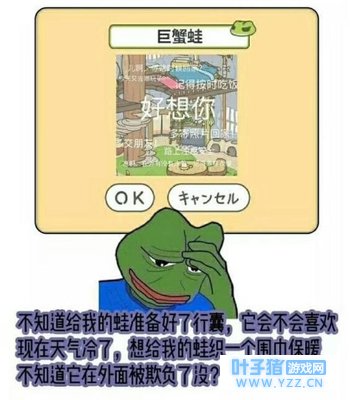 《旅行青蛙》2018年1月,这款养生的佛系游戏,迅速受到广大佛系青年的喜爱,成为了朋友圈新式刷屏内容。网友们从“晒娃风”刮成了“晒蛙潮”。只要给它收拾好行囊,它就会自动出门远行。一段时间之后,青蛙会带回来一些土特产,它也会在旅行途中给你邮寄一些明信片。但是,“旅行青蛙”出不出门、什么时候出门、什么时候回来,全都是随机的。
