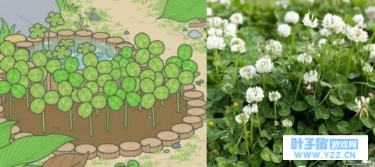 打开游戏界面,映入眼帘的是一片郁郁葱葱的小庭院,可见虽然这只青蛙酷爱在外游山玩水,但回家打理庭院时还是很用心的,而且还很有园艺品味。 先来看庭院左侧的花坛,里面种着青蛙旅行世界的通用货币——“三叶草”。根据其叶片上的白色环形斑纹,大致可以推测其为白车轴草(Trifolium repens)。 白车轴草原产欧洲和北非,不过早已被人类栽培并四处逸生,现在是全球温带及亚热带地区最常见的杂草之一。白车轴草被人类带往世界各地,一方面因为它是一种优良牧草,含有大量蛋白质和矿物质;另一方面因为它和很多豆科植物一样,可以和根瘤菌共生,在根部结瘤固氮,为土壤生态系统提供氮源,使土地更肥沃。 除了功能强大,白车轴草的外观也很好看,在花期内,可爱的球形花序缀满了小小的白色蝶形花,远看就像一个个蒲公英球,非常可爱。 此外,白车轴草还是一种“幸运草”,因为它很容易出现四片小叶变异。说不定当青蛙在家的时候,会和它的小伙伴在“三叶草”花坛里寻找四叶的“幸运草”呢!