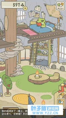 吃完饭的小蛙不是削木头就是写东西或是看书,有小蛙陪伴心里暖暖的。
