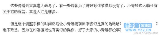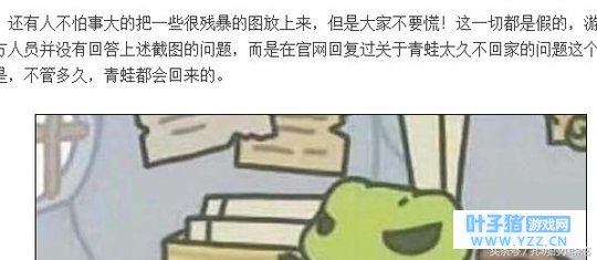 看到这些网友的评论,小编也不禁担忧起了自己的蛙,想它出去玩会不会也会遇到坏人,早上上班时,也在跟同事讨论这件事,并把网友蛙遇害的图片发给同事看,接着同事便去搜那篇传说蛙会死的文章,然而文章被删了,小编心想:可能是文章轰动性太大了吧,然后自己又上网搜了些相关消息,才得知蛙会死只是谣言而已!!!