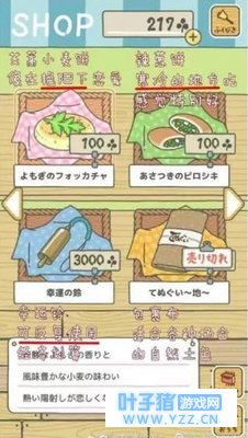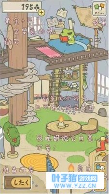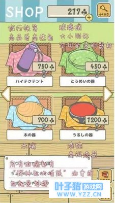 商店有便当和道具卖,玩家可以用三叶草购买。不同的便当也道具价格不一样,不同的便当和道具组合在一起,也会决定了你的青蛙儿子每次旅行地点和遭遇的不同。