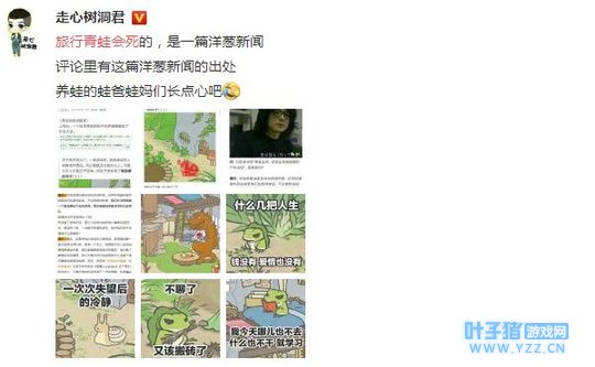 好在文章作者自身及时出来辟谣,这篇本来就图乐一乐的文章,里面所有内容都是瞎编的,而很多微博大V也纷纷出来辟谣。游戏官方在官网对于“青蛙太久不回家”这个问题的回复则是,不管多久,青蛙都会回来的。意思就是,蛙崽这个浪子不管踏上多远的旅途,家都是最终的归宿!!