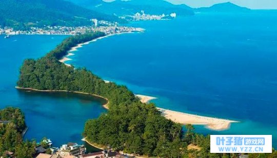 3、京都天桥立 天桥立是一处长条型沙洲,它长3.2公里、宽40~100米,沿途种着7000多颗松树。天桥立呈南北走向,西面是阿苏海(内海),东面是宫津湾(属日本海)。由于这里位处京都府,所以是旧时代的天皇、国家政府的所在地,附近又发现很多古墓群,挖掘出来的葬品非常具有历史研究价值,这使得使天桥立在日本人的心中有着非常重要的地位。