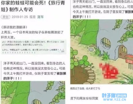 最近某公众号披露,称旅行青蛙会死在外面,被撞死被饿死被吃掉都有可能,随后还送上了游戏截图。