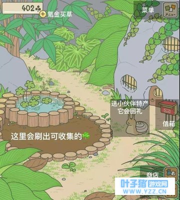 一只热爱旅行的青蛙《旅行青蛙》游戏节奏缓慢,界面整洁,只有两个主要场景,一个是蛙的起居室,另外一个是室外种三叶草的地方。