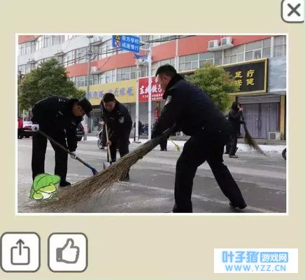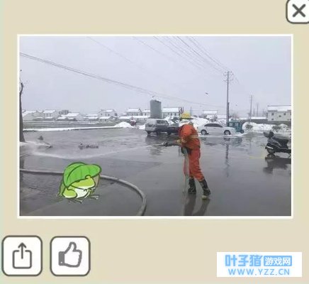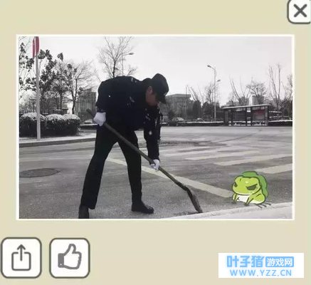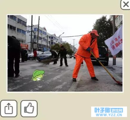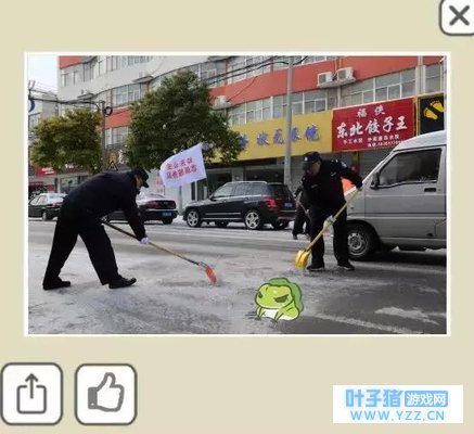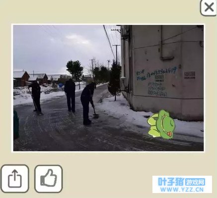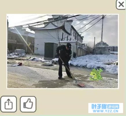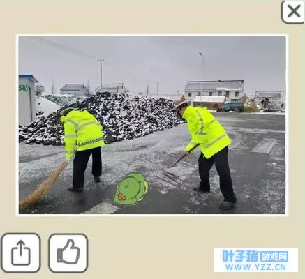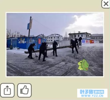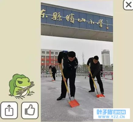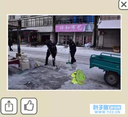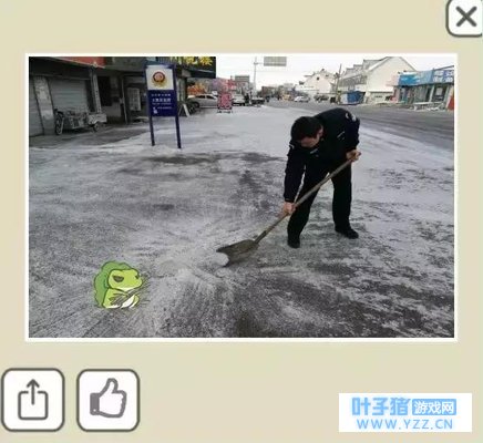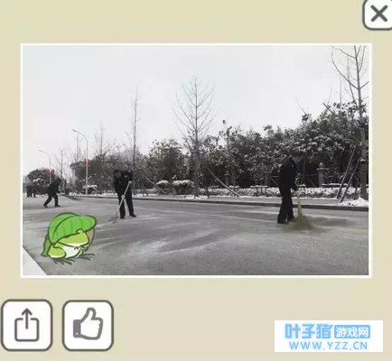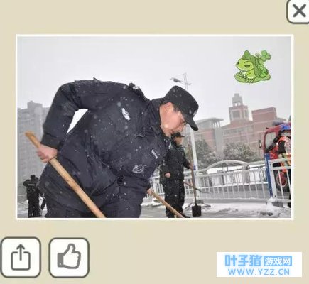 日晖路上也有那么一群人 挥着铁锹 不停地铲、铲、铲…… 刚才厚厚的积雪 转眼就已经不见 呱~~