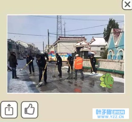 一群青年小伙儿 拿着铁锹,扛着扫把 从幸福路16号出发 在海花路上扫雪、铲冰 路通了,心才能更近 呱~~