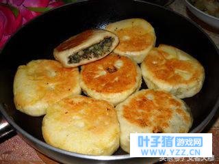 10.锅中油热,馅饼生胚收口向下码放入锅;中火煎2分钟定型;淋入冷水,没过馅饼生胚的1/2;大火将水煎开,转小火慢慢煎至水分将干时,沿锅边淋入适量食油,煎至馅饼两面微黄熟透即可。