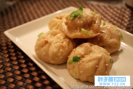 3 将面团揪成约20克每个的小面团,并擀成圆皮。将每个包子圆皮中包入适量肉馅,做成包子形,放入蒸锅隔水蒸15分钟,即成半成品。