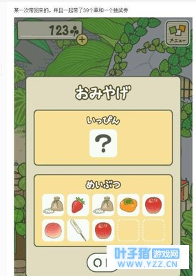 而相对于这一个悲惨的玩家,别的玩家就是“人品帝”了,青蛙儿子一次的旅游直接带来来了39个草和一个抽奖券,这。。。看到这里不禁想问这两个人玩的是同一款游戏吗?
