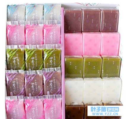 这是外郎饼,名古屋的特产喔。小果子口感粘糯,是由小麦粉、糯米粉等蒸制而成的哦! 包括抹茶、樱花等五种口味。伴手礼必备!