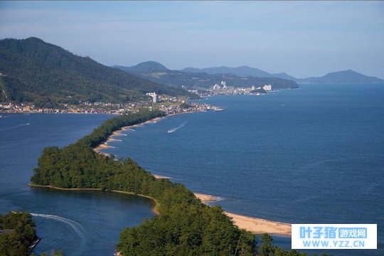 天桥立 后来他们告诉我,传说如果站在图中两处地势较高的山头,背对着沙洲站立并低头从自己的跨下朝后望时,会看到沙洲犹如一条往天上斜伸而去的桥梁。