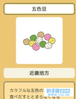 五色豆 五色豆来自日本近畿地方,这个吃一口就停不下来!!五种颜色有五种味道,分别是砂糖(白色)、梅肉(红色)、海苔(绿色)、柚子(黄色)、肉桂(茶色),我当然最喜欢红色味道的~~并且热爱自然的日本人将五种颜色象征大地。