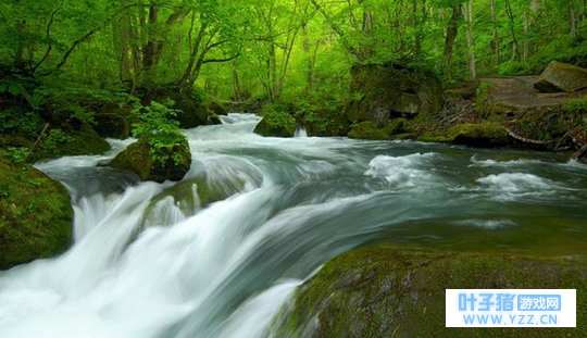 奥入濑溪流的苔桥 日本青森县的奥入濑溪流。这并不是一个倒下的大树干哦,而是著名的苔桥。可以沿着它去徒步!这里被称为是“日本最美溪流”!
