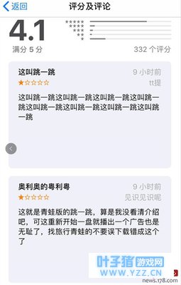 此外,更令人啼笑皆非的是,山寨版的《旅行青蛙.》并非是免费游戏,而是一款收费产品,且游戏的定价为30元,在付费游戏中1已经是属于较高的价格。从目前来看,已经有不少玩家进行了购买。许多玩家都在游戏下面给出差评称受到了欺骗”这是跳一跳,根本不是旅行青蛙”。并且游戏中加入了付费广告,玩家每次重新进行游戏都需要观看广告。