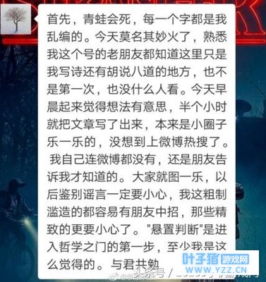 青蛙会死的博主出来发文道歉了~ 他表示故事是乱编的,本来是小圈子乐一乐的,没想到还上了热搜…看到这里,各位蛙妈可以放心了,你们的蛙不会有生命危险