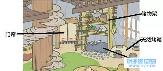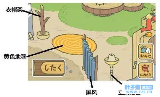 进门处地面凹陷,倾斜而上,很大程度上防止了雨水倒灌。 门口的一块黄色地毯,醒目而活泼,避免了将爪底的污泥带入室内,可见屋主是个有洁癖的小男生哦~ 小树枝做成的衣帽架造型质朴,简洁独特,平时屋主进门时,便会顺爪将他的绿帽子挂在上面。 由于石屋内没有多余的墙体阻隔,整体呈开放式。 因此屋主放置了一扇屏风,一方面阻隔了冬日的寒气,另一方面遮挡了半公共区域的视线,尽可能保证了生活隐私。 黄绿蓝的巧妙配色,也为空间带来了满满的活力! 客餐厅一体,弥漫青草香