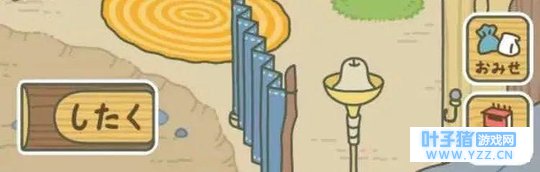 蓝色界面有个向右滑动的尖头,点击后会出现黄色 「つくえ」 的界面。这是家里桌子上要放置的东西, 蛙儿在不在家最好都要放上食物,防止它不回家!