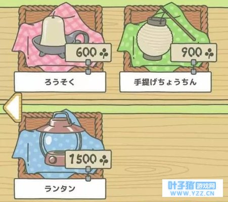 ろうそく 蜡烛 适合装在包里的可爱小蜡烛 ps.:会去探险,照片中青蛙会拿着蜡烛。 手提げちょうちん 手提灯笼 适合抱在怀里的漂亮的灯笼 ps.:会去探险,照片中青蛙会拿着灯笼。 ランタン 提灯 能照到很远的地方,气氛很棒的提灯 ps.:会去探险,照片中青蛙会拿着提灯。 PS.1:所有的碗都有“在野外很活跃”的介绍,也就是会到有水的地方乘船。 PS.2:所有的灯具都有“无论何时都要确保照明”的介绍,也就是说会去往需照明的地方旅行。