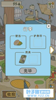旅行青蛙 3.行 李里啥也没有,桌子上放好食物,护身 符,道具。二狗子会从桌子上挑选自己喜欢的东西带去旅 行。 4.二狗子出去又回来了,行李里的食物没减少。给二狗子放食物的时候,行李那一步没点下面 的白色字(完毕)。