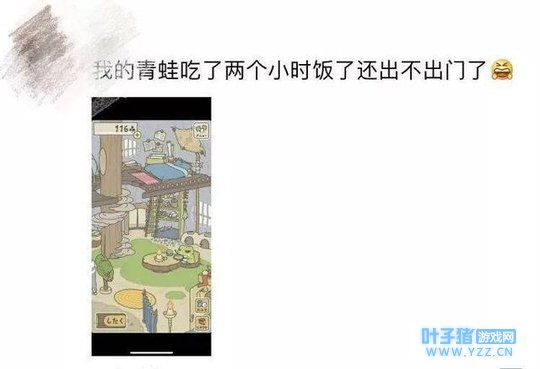 这个游戏大概就是你养了一只爱旅行的青蛙,给它起个特别的名字,然后按照要求种一些三叶草,定时收割,再用这些草去为它准备外出食物和必须用品,招待它的朋友,然后就看着他吃饭睡觉写东西的一个极度佛系的【放置系】游戏,几乎不耗费你的时间就可以玩。 不旅行的时候 蛙的日常就是收收屋子 ▼