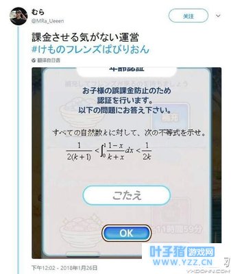 然而在这些氪金玩家中也有不少小朋友,他们做决定非常容易冲动,并且没有收入来源,想要氪金,就只能靠向父母要零花钱,甚至偷偷用父母的账号进行支付,我们经常可以在网上看到类似的资讯。 那么,有没有什么方法能有效的制止类似的事情再发生呢?今天,《兽娘动物园》手游新作在日本上线了。在这个游戏中,为了防止小朋友误氪金,玩家需要先回答一道数学题才能消费。