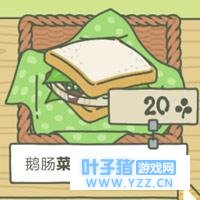 2、鹅肠菜三明治 价格: 20三叶草 介绍: 用爽口蔬菜做的三明治 评价: 浇上了特质的将油汁,可以当做简餐食用。 效果: 勉强让蛙吃饱的调理面包,能撑一下下。