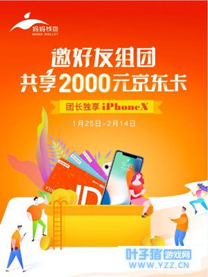 各位蛙爸蛙妈们,看这里,在家等蛙也能赚钱的姿势!妈妈钱包“ 邀好友组团 ”活动正式上线了! 邀请好友瓜分2000元京东卡,团长独享iPhoneX! 办年货,你一定需要这张大额的京东卡哦~~