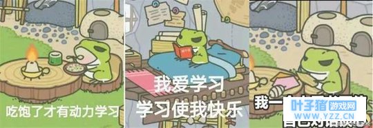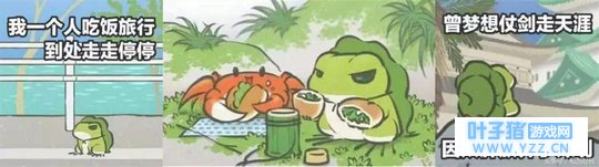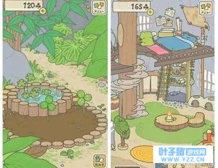 玩家通过收割院子里的三叶去商店换些吃的用的,供小青蛙旅行。玩家也可以点进屋子,查看小青蛙的状态,是在家里读书看报、吃饭?还是出去旅游了?