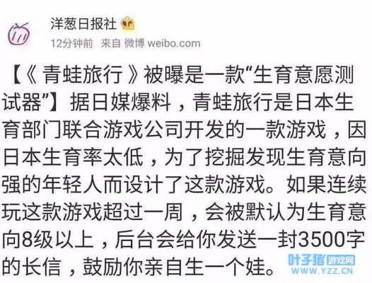 洋葱日报社签名:反正我们的资讯都是假资讯。 日本的生育率低下一直是困扰日本的大事情。而近年来,这个生育率这个问题也开始困扰到我国。即使开放二胎也难阻人口出生率的持续下跌。开发一款游戏刺激生育率,对日本人民来说也并非是没可能啊! 因为养蛙超过一周,确实能体验到全套养娃的喜怒哀乐