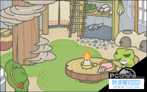 这里主要的功能有三个: 收集三叶草,这是游戏中的货币。可以用来购买蛙蛙的食品和物品。收件箱,蛙蛙每去一个新地方,都会给你发来照片和礼物。庭院里偶尔会有小蜗牛来做客(其实是卖广告),你要替蛙蛙招待他们。 界面的右下角有一个像房子的按钮,点击它,我们就进入了游戏的另一个界面——蛙蛙生活的房间。