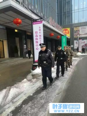 大雪中的雨花巡警大队 照例在各重点单位巡逻 在雪堆里踏出一条条路 他们说:鞋湿了不打紧 走两步脚就热乎了!