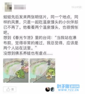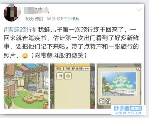 一时之间人们的视野全被一只青蛙占据了,从微信朋友圈,再到微博热点话题,让我不禁感叹,青蛙无处不在啊。 游戏的火热,让我也不禁下载体验一下,根据游戏感受,总结了二点:一、养成与圆梦 这是一款养成类游戏,通过游戏中的青蛙,模拟现实人类养成,通过获取收集材料,不断优化青蛙的生活环境,从中获取一定的成就感。 养成游戏,是一种造梦的游戏类型。无论是哪个养成游戏都拥有着为玩家圆梦的能力,不管你是想养育一个小女孩,还是想谈一次浪漫纯洁的恋爱,或者是成为演艺界赫赫有名的明星,养成游戏都能够帮你实现这些愿望。游戏里,我们能够做一些平日里不敢做或没能力做的事。 二、期待与惊喜 在这款养蛙游戏中,最大的亮点之一就是给人以期待,因为游戏的玩家可以通过收集三叶草去商城买东西,有食物、幸运符、道具。青蛙带着这些东西就会出门旅行,然后旅行途中会邮寄照片,回来还会带回来当地的土特产。 每一次的青蛙旅行,都有着不同的机遇,玩家不知道青蛙在旅行过程中会遇到什么,当以明信片的形式让玩家了解到发生的事情,其实这是一种期待和惊喜。 还有一种就是“惊吓”“旅行青蛙”出不出门、什么时候出门、什么时候回来,全都是随机的。 因此有的“母亲”就成为了散养型母亲。