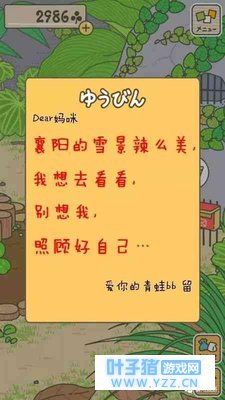 不知从何时开始 一打开手机 总想看看我那只爱旅行的青蛙 种一些三叶草 再用为它准备外出的食物和用品 让它外出旅行 可这个佛性的小游戏,却总让我抓狂 我的“蛙儿子”,真是为它操碎了心