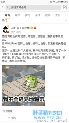 1月26日晚旅行青蛙会死这个话题在微博热搜榜第一的位置,看来大家都非常关注自己的“呱儿子”结局呀。按照网友曝出来的图来看,旅行的青蛙在出门两天后还是没有回来,玩家非常担心第三天打开游戏的时候发现院子里青蛙被肢解了且场面非常血腥,这个消息引起了轩然大波没想到居然会有这种结局。