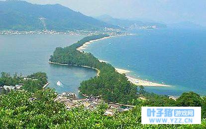 接下里我们看到的是日本近畿地区的京都府天桥立,非常漂亮吧,一条绿色的长桥,这个照片怎么容易获得呢?这个地方在西边所以最好有西方车票,还有就是白色护身符啦…