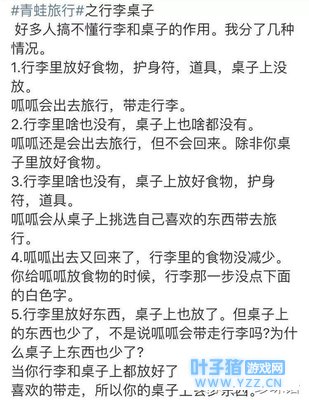 旅行青蛙是一个很萌但又非常佛系的游戏,它的一个最大的特点就是:很随机。就算用了种种方法,也还是会出现“我蛙不回家”“我蛙不出门”“我蛙不寄照片”“我蛙不带礼物”“我蛙没朋友”“我蛙不恋爱”“我蛙不爱我”等等状况。 所以:请不要太在意。