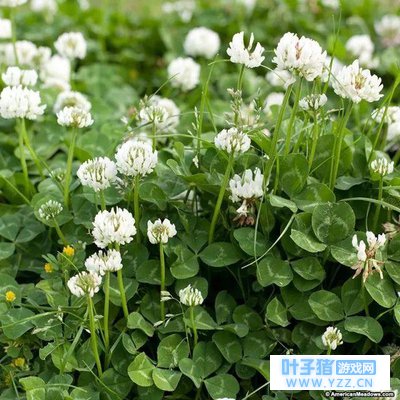 现实中的白车轴草。图片:americanmeadows.com 白车轴草不是一种具有很强的入侵性的草本,但是它能够适应很多截然不同的环境,其中更偏好开阔的草地。另外,白车轴草的外观也很好看,三片小叶上面有醒目的白斑,到花期可爱的球形花序缀满了小小的白色蝶形花,远看就像一个个蒲公英球,非常可爱。