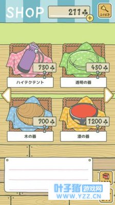 旅行青蛙 旅かえる是猫咪后院游戏公司HIT-POINT新出的一款休闲小游戏。 主角是一只可爱的小青蛙,你可以给它取名字。 通过收集三叶草去商城买东西,有食物、幸运符、道具。青蛙带着这些东西就会出门旅行,然后旅行途中会邮寄照片,回来还会给你带当地的土特产。目前IOS游戏只有日文版。 一:食物 食物、护身符、道具介绍一览