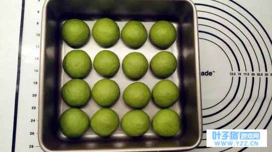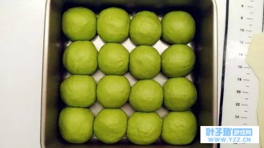 3、开启面包机发酵程序,一个钟,发酵到面团膨胀两倍大,手指沾面粉戳一个洞,不回缩不塌陷即表示发酵完成; 4、发酵好的面团用擀面杖排气,把它们均分成16份,滚圆之后盖上保鲜膜松弛15分钟;