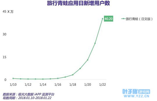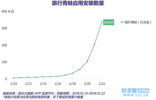 摘要: 在重度氪金的中国手游市场,《旅行青蛙》的成功被认为是一场“佛系”的反击,但这场“逆袭”被认为不会持续太久。 本文来自华尔街见闻旗下“全天候科技”,悦读更多请登录www.awtmt.com 或关注微信号“全天候科技(ID:iawtmt)” 、“新金融见闻(ID:AWFintech)。 文 | 全天候科技 舒虹 一只目无表情、独自吃饭旅行的“佛系”青蛙突然火了。一周之前,朋友圈讨论最多的话题还是“粉丝豪掷百万地标为李泽言庆生”(来自另一款爆火手游《恋与制作人》)。 截至1月25日晚,这款名叫《旅行青蛙》(日文原名:旅かえる)的手游在中国区App Store畅销榜排名第12位,而在免费游戏类排行榜一直稳居第一。根据游戏产业研究网站GameLook的测算,如果不考虑App Store对新游戏增加权重的因素,这个排名意味着该游戏iOS端单日收入或达300万元人民币。 《旅行青蛙》是1月中旬开始在中国走红的。据极光大数据提供给全天候科技的数据,截至1月22日,该款游戏在安卓和苹果应用商店的累计下载量达到了334.67万,日新增用户40.2万。