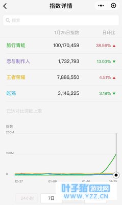 在重度氪金(玩家需要不断充值升级以获得更高级的游戏体验)的中国手游市场,《旅行青蛙》的成功被认为是一场“佛系”手游的反击。在该游戏中,玩家不需要被金钱捆绑,“随缘”和“等待”是大部分养蛙群众最常见的状态。 但是这场“逆袭”被认为不会持续太久。有业内人士认为,《旅行青蛙》操作碎片化,简便性程度不如微信小游戏,调动玩家情绪的玩法可持续性低,盈利模式单一,产品寿命周期不会太长。 截至目前,《旅行青蛙》iOS版还停留在1.0.1版本。它的玩法至简,甚至有些无厘头:两个场景、零剧情、不用升级打怪、没有血腥打斗和死亡这些负面体验、也不占玩家太多时间。 曾在多家互联网企业担任产品运营师的白崎坦率地指出,如果这个游戏按照这样的设定不做迭代,大概两周左右就会进入衰退期,逐渐从朋友圈、日常交谈话题中消失。 不要低估热点消退时的爆发力。一星期前,大多数人不会想到,“霸道总裁”李泽言从被众多年轻玩家称为“老公”到被“佛系90后”抛弃,其热度也只持续了短短一个月。 《旅行青蛙》还能火多久?为了减少等“蛙”回来的时间,网友“豆奶”的苹果手机系统时间已经调到了2018年6月2日。在游戏中,“呱儿子”(部分玩家对其的昵称)经常很久才出去一趟,出去后要很久才能回来。 1月22日开始,一份“呱儿子攻略”开始在朋友圈流传。玩家们发现,只要将手机系统设定的时间加快,便可以减少等待时间,加快游戏进程。 这当然是一个Bug。在养蛙的第二天,网友“闹闹”开始急不可耐的找攻略,发现可以调时间,“5分钟内调到3月去了,明信片集了三页”。“瞬间觉得没意思了”,闹闹说,养蛙生涯就此终止。 另一位来自广州的游戏业人士则认为,这个游戏能让你获得的唯一一点“目的性乐趣”就是收集青蛙旅行带回来的明信片。 一位腾讯GAD游戏开发者社区的开发者对全天候科技总结了《旅行青蛙》走红的四大原因:操作简单、画风治愈、情感交互到位、话题本身具备社交讨论性。但它缺少可持续绑住用户的玩法和内容。 据出品方Hit-Point透露,开发这款游戏投入了4名工作人员、花了10个月左右时间。以国内游戏业创业来推测,该游戏的制作成本大约在30万-50万元人民币。根据天风证券的测算,《恋与制作人》的制作成本则在5000万以上。 上述开发者告知,一般轻量级的小游戏都是小制作、简单易上手,容易在短时间内爆炸刷屏,但大多数的小游戏都像一阵风吹过,真正能够沉淀用户的并不多。通常流量在一个月内就会迅速下降,被新的热点所替代。从2017年底大热的《恋与制作人》到《旅行青蛙》,期间热度也就持续了一个月。 《旅行青蛙》横空出世后,《恋与制作人》的受关注度已大幅走低。全天候科技查阅微信指数发现,1月25日,《旅行青蛙》的微信指数日环比上升38.56%。但是,微信端对于《旅行青蛙》的讨论热度增幅也开始收窄。1月21日至24日,其日环比升幅分别为198.14%、96.71%、86.37%和49.15%。 微信大数据是2017年3月腾讯基于微信推出的移动端数据平台,用以了解某一关键词或刷屏事件在一段时间内微信讨论热度的变化。
