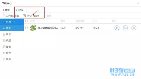 然后点击已完成,选择导入本地文件,将你下载好的汉化版软件导入进来,右边点击安装按钮即可。